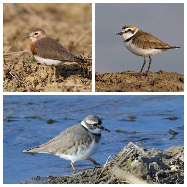 上图从上到下依次为:东方鸻、环颈鸻、长嘴剑鸻。
